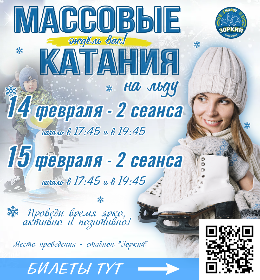 7 февраля на льду стадиона "Зоркий" пройдут массовые катания на коньках. Всех приглашаем провести время ярко, активно и позитивно. Заряд бодрости и хорошего настроения вам обеспечен!